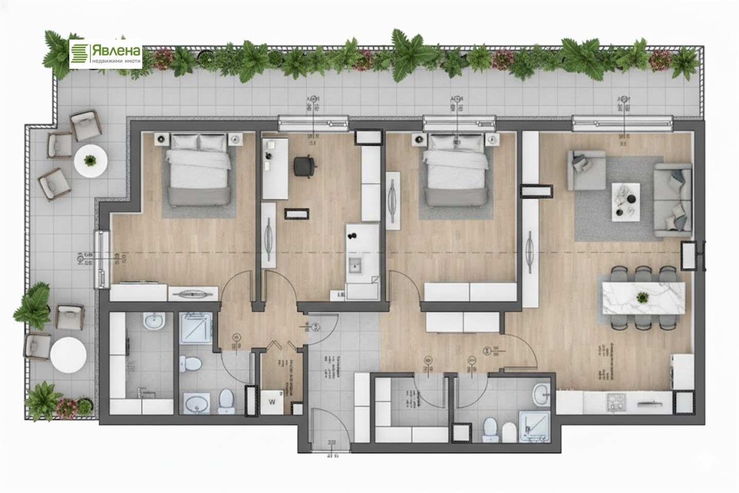 Агенция Явлена предлага за продажба многостаен апартамент на седми етаж в жилищна сграда в Младост 2. Разпределението включва антре, дневна с кухненски бокс, три спални, два санитарни възела, два дрешника и мокро помещение. Имотът е с площ от 133 кв.м (ЗП - 115 кв.м) и разполага допълнително с 43 кв.м прилежаща покривна тераса идеално пространство за релакс. Сградата предлага модерна визия, луксозни общи части, контрол на достъпа и озеленено вътрешно пространство. Има възможност за закупуване на подземен гараж. Локацията в Младост 2 осигурява бърз достъп до метро, търговски центрове, училища и паркове. Цената е без включен ДДС. За повече информация и огледи, свържете се с нас! /YavlenaCOM-163775/