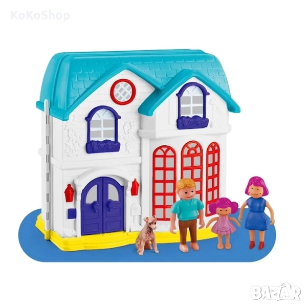 Забавна къща за кукли на два етажа,в комплект със семейство кукли,зомашен любимец и обзавеждане. Натисни звънец на вратата и ще чуеш как звъни и кучето да лае.