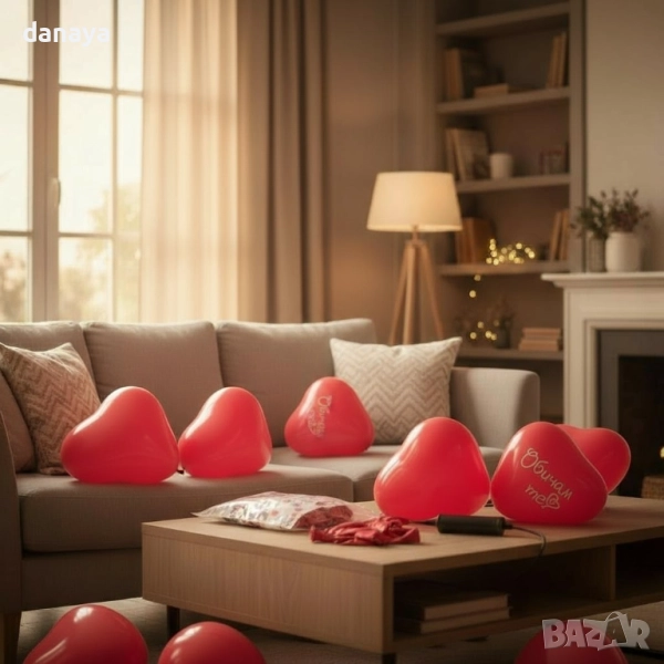 Подходящи за Свети Валентин, годишнина, предложение или изненада за любим човек. В ненадуто състояние са 11×7 см, а при надуване достигат около 25×17 см. Предназначени за пълнене с въздух – могат да се подредят върху маса, стена или да се включат в композиция с други балони и декорации.