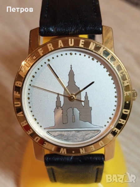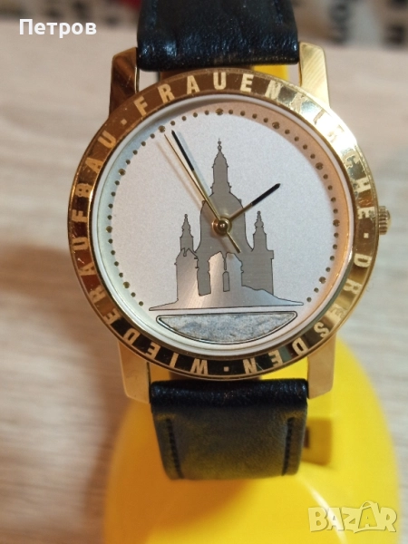 Made in Germany.Slim.Gold plated.38mm.каишка от естествена кожа.Лимитирана бройка.Нов!