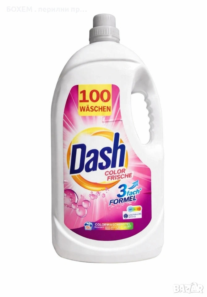 Течният препарат Dash е специално разработен за пране на цветни дрехи, като ефективно премахва замърсяванията и запазва яркостта на тъканите. Благодарение на усъвършенстваната си формула, препаратът се справя отлично и при ниски температури, без да избледнява цветовете.