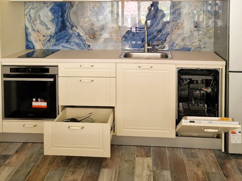 Апартаментът е функционално обзаведен и оборудван с всичко необходимо, готов за нанасяне. В кухнята има стилни и изцяло нови кухненски шкафове, изработени по поръчка от висококачествен МДФ, допълнени от стилен гръб от красив широкоформатен гранитогрес с изображение на тема морска стихия, нови домакински уреди (голям хладилник с функция No frost , съдомиялна машина, фурна с пиролитично самопочистване, стъклокерамичен плот за готвене, аспиратор с пълно вграждане, вградена микровълнова) и вградени в кухненската повърхност изтеглящи се контакти, които не събират прах и мазнини, докато гответе в кухнята. В трапезарията има разтегателна дървена трапезна маса, на която удобно могат да се настанят до 8 човека. В спалните са предвидени 4 спални места (1 двойно и 2 единични легла), а в дневната - допълнителни места за спане на голям разтегателен диван.