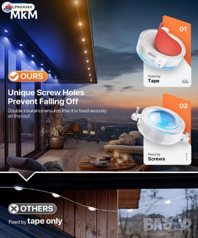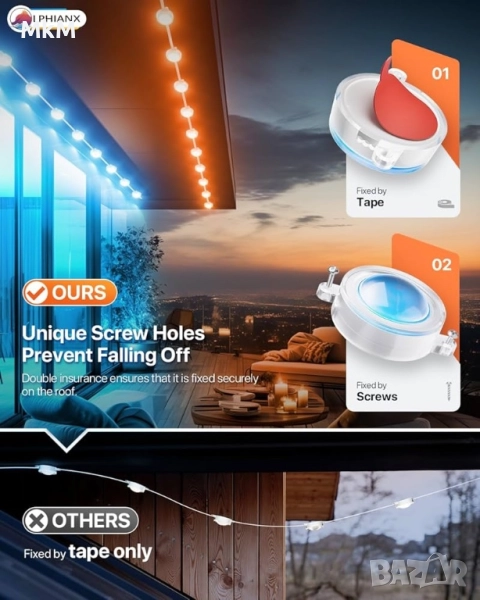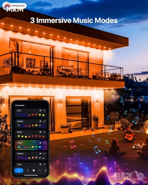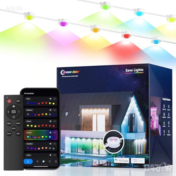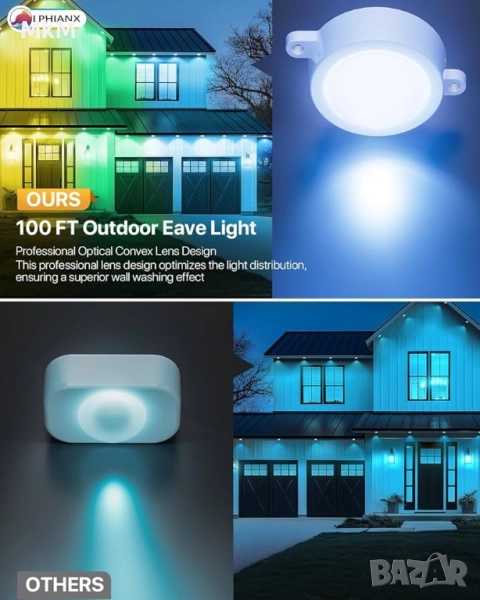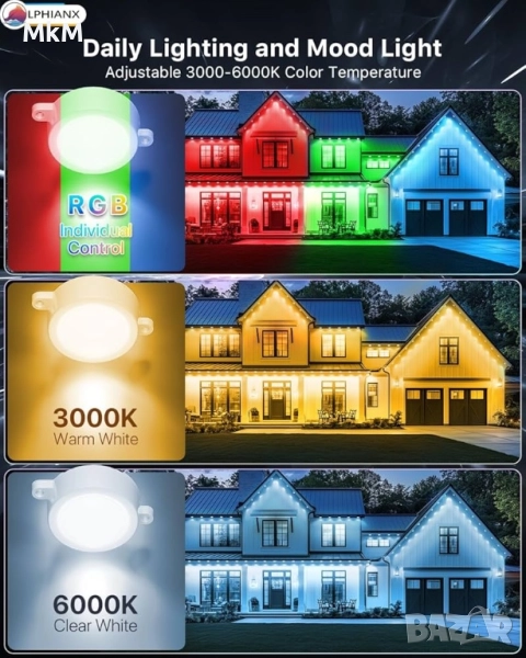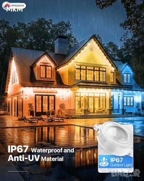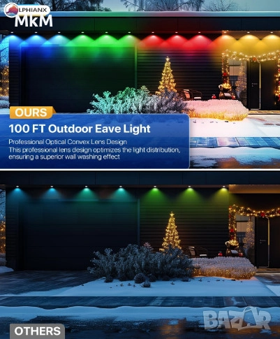 Интелигентни външни светлини LPHIANX, 30 м, 80 LED, RGB смарт постоянни външни светлини, управление с приложение/глас/дистанционно, водоустойчиви IP67, работа с Alexa, Google Assistant