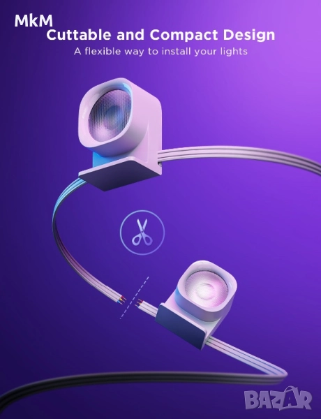Лесен монтаж: Тези интелигентни луни за вграждане са адаптивни към повечето извивки и ъгли, осигурявайки гъвкави опции за монтаж. Където и да решите да ги поставите, те ще останат на мястото си толкова дълго, колкото са ви необходими. Забележка: Изключете лампите от контакта, преди да режете.