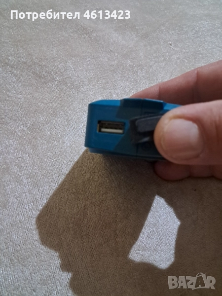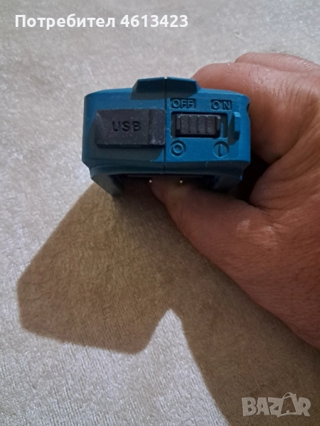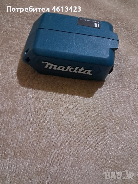 Адаптера е предназначен за зареждане на уреди и телефони снабдени с кабел за USB порт. Адаптера е за батерии на Makita 10,8 и 12 волта. Изходното му напрежение е 5V, 2,1A. Адаптера е използван само веднъж и та практика е нов.
