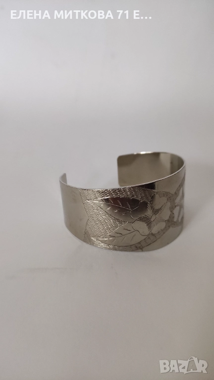 Широка гравирана гривна от сребрист метал → Обява 52369307