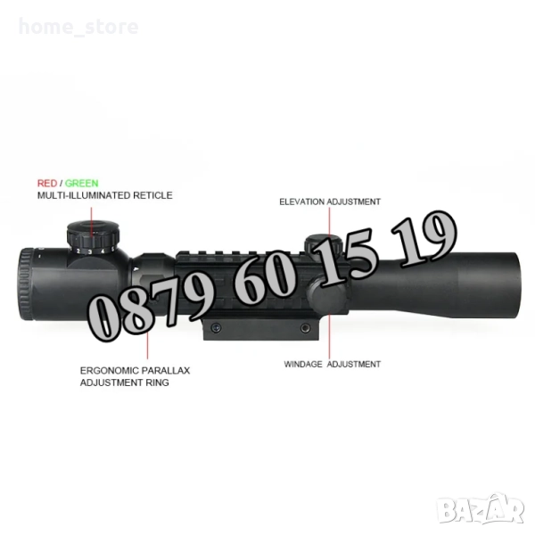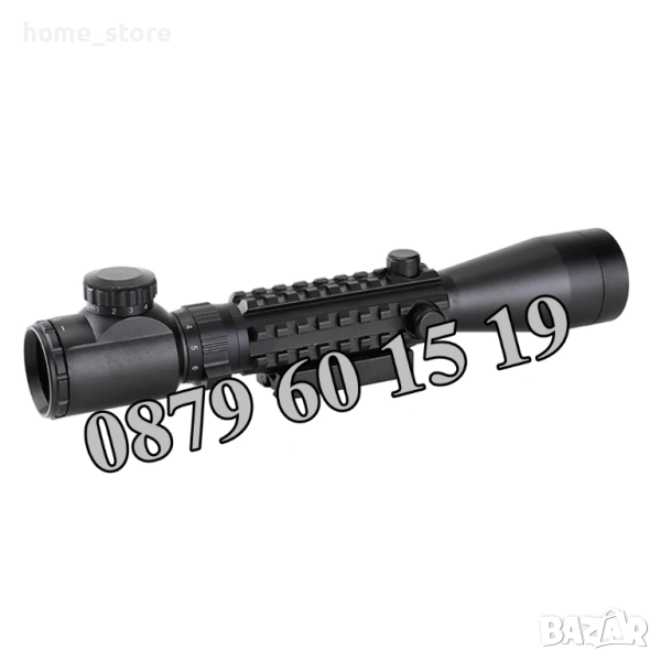 ОПТИКА ЗА ПРИКРЕПВАНЕ КЪМ ПУШКИ С РЕГУЛИРУЕМО УВЕЛИЧЕНИЕ от 3 до 9. Оптически прицел с двуцветна подсветка за ловна стрелба и вградена просветка за работа при намалена видимост в два цвята, червен и зелен с по пет степени за регулиране на интензитета за всеки цвят. Оптиката е чудесна принадлежност при лов. Отлично качество, рационален дизайн и елегантен външен вид. Наблюдавате и фокусирате обекти намиращи се на голямо разстояние.