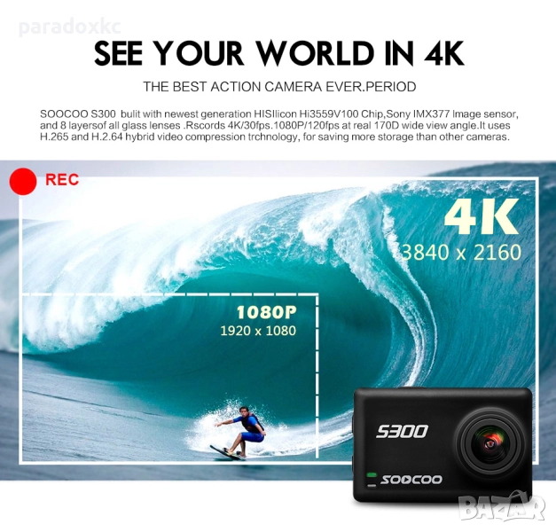 🎬 Истинска 4K резолюция (до 30fps) – кристално ясна картина