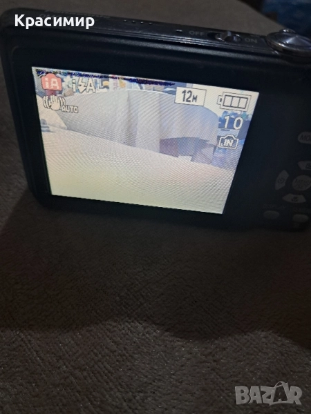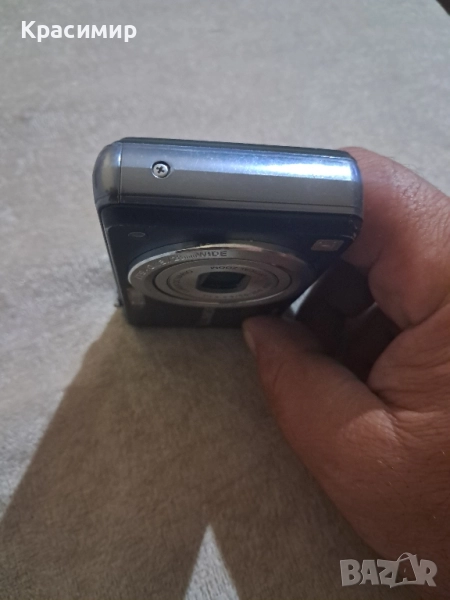 Фотоапарата е в отлично техническо състояние с нормални следи от употреба. Фотоапарата е с чисто нова батерия. В горната част на дисплея има изгорели пиксели, като черта, което се вижда от снимките и не пречи на работата на фотоапарата. Счупено е капачето за батерията, но тя е с държач и не може да падне. Давам и капачето, което може да се залепи. Характеристики: Максимална резолюция4000 x 3000Ефективни пиксели12 мегапикселаРазмер на сензора1/2,33" (6,08 x 4,56 мм)Тип сензорCCDISOАвто, Hi Auto (1600-6400), 80, 100, 200, 400, 800, 1600Фокусно разстояние (екв.)28–140 ммМаксимална блендаF2.8–6.9Съчленен LCD дисплейФиксираноРазмер на екрана2,7 ″Точки на екрана230 000Максимална скорост на затвора1/1600 секФорматMotion JPEGВидове съхранениеSD/SDHC/SDXC карта, вътрешнаUSBUSB 2.0 (480 Mbit/sec)Тегло (вкл. батерии)163 г (0,36 фунта / 5,75 унции )Размери98 x 55 x 23 мм (3,86 x 2,17 x 0,91 инча ). Продава се без зарядно. Изпраща се задължително с преглед и тест.