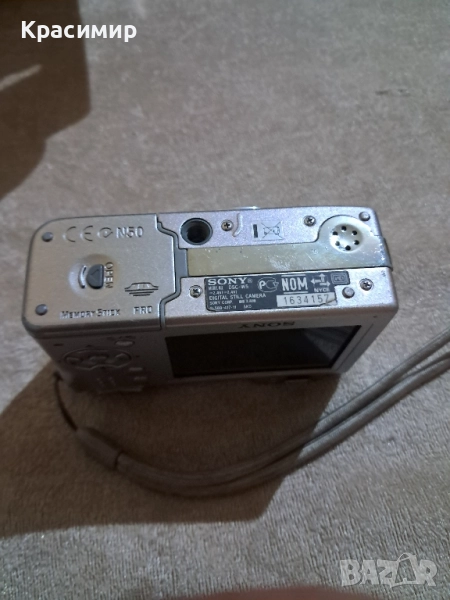 Фотоапарата е с минимални следи от употреба и в отлично техническо състояние. Оригинален фотоапарат, произведен в Япония. Характеристики: Максимална резолюция2592 x 1944Ефективни пиксели5 мегапикселаРазмер на сензора1/1,8" (7,144 x 5,358 мм)Тип сензорCCDISOАвтоматично, 100, 200, 400Фокусно разстояние (екв.)38–114 ммМаксимална блендаF2.8–5.2Размер на екрана2,5 ″Точки на екрана115 000Максимална скорост на затвора1/1000 секФорматMPEG VXВидове съхранениеMemory Stick / Pro, вътрешнаUSBUSB 2.0 (480 Mbit/sec)Тегло (вкл. батерии)250 г (0,55 фунта / 8,82 унции )Размери91 x 60 x 36 мм (3,58 x 2,36 x 1,42 инча ). Работи с 2 броя батерии Тип АА 1,2V. Продава се без батерии. Изпраща се задължително с преглед и тест.