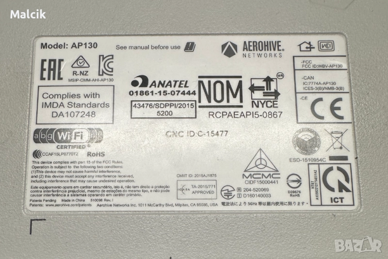 2 броя точка за достъп Aerohive работещи перфектно с нови адаптери скоро докарани от чужбина цената от 50лева е за един комплект или 2те заедно за 90лева