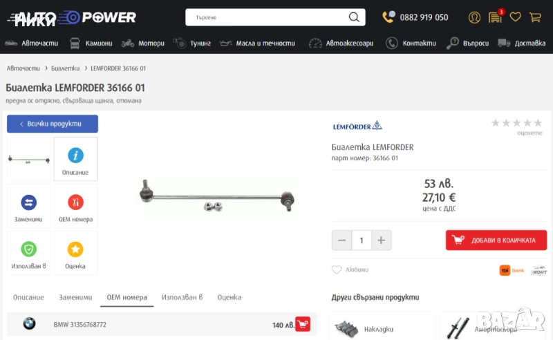 Биалетка LEMFORDER 36166 01 за БМВ е9х xDrive и X1 e84 xDrive, снимка 1 - Части - 52370475 Биалетка LEMFORDER 36166 01 за БМВ е9х xDrive и X1 e84 xDrive, снимка 2 - Части - 52370475 Биалетка LEMFORDER 36166 01 за БМВ е9х xDrive и X1 e84 xDrive, снимка 3 - Части - 52370475 1/3