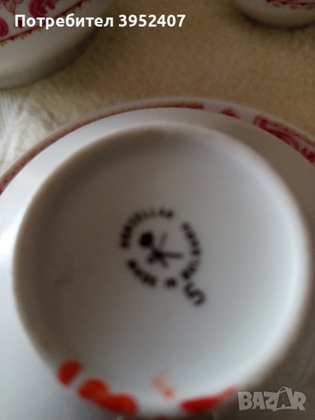 Остатъци от много стар сервиз, ако заинтересува колекционери. Много красива шарка, интересни дръжки, първо качество - червен печат.