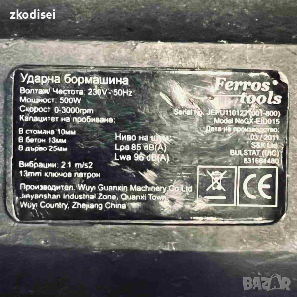 Дрелка FERROS TOOLS 500W, снимка 1 - Бормашини - 52372278 Дрелка FERROS TOOLS 500W, снимка 2 - Бормашини - 52372278 1/2
