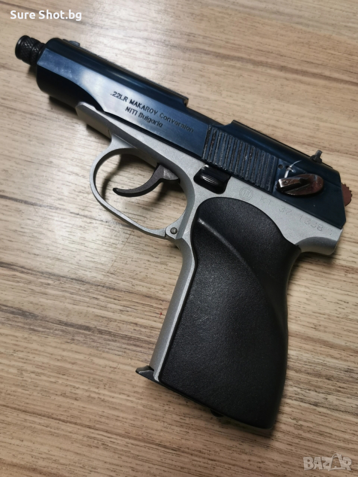 Продавам боен боен пистолет Макаров кал.9х18мм. Хром, анатомична ръкохватка, пълнител с алуминиева пета и кутия. Оръжието върви комплект с конверсия на NITI към кал.22lr. Оръжието е втора употреба. Шест месеца гаранция и технически преглед. Само лично предаване срещу валидно разрешение за придобиване на два броя КОО. Моля, разгледайте и другите ми обяви за още интересни предложения за самозащита и спорт! Пълно представяне на: https://www.facebook.com/share/p/17d49HZBN4/