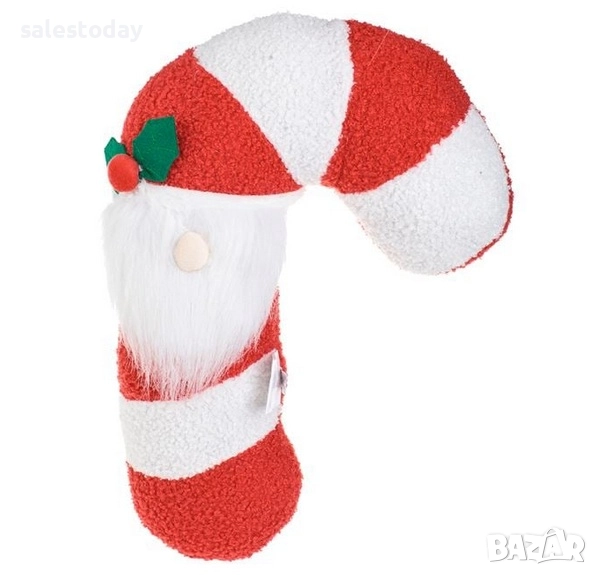 Коледна декоративна възглавница във форма на бастунче Candy с фигура на Дядо Коледа, 31x10x43см