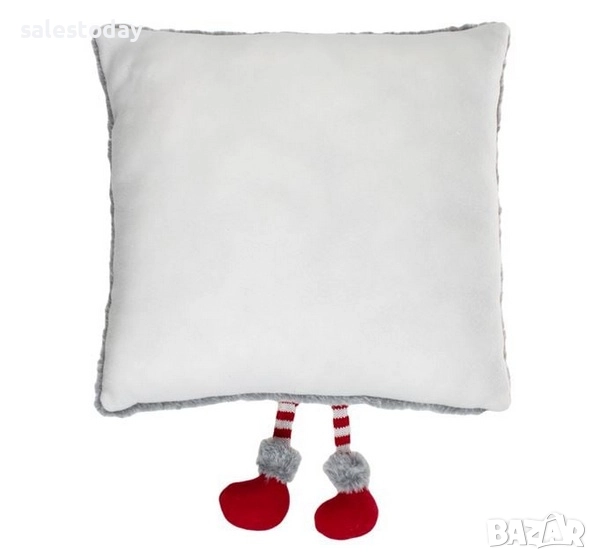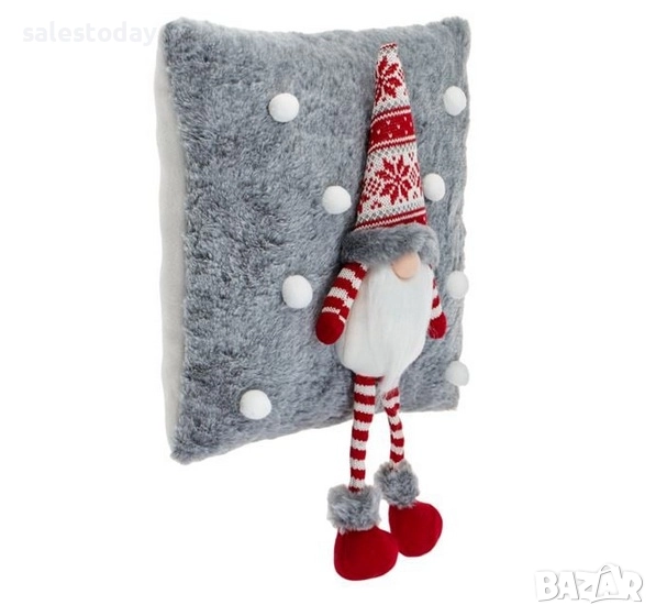 Възглавница за коледна декорация, сива, 3D Дядо Коледа, джудже, 35x50см