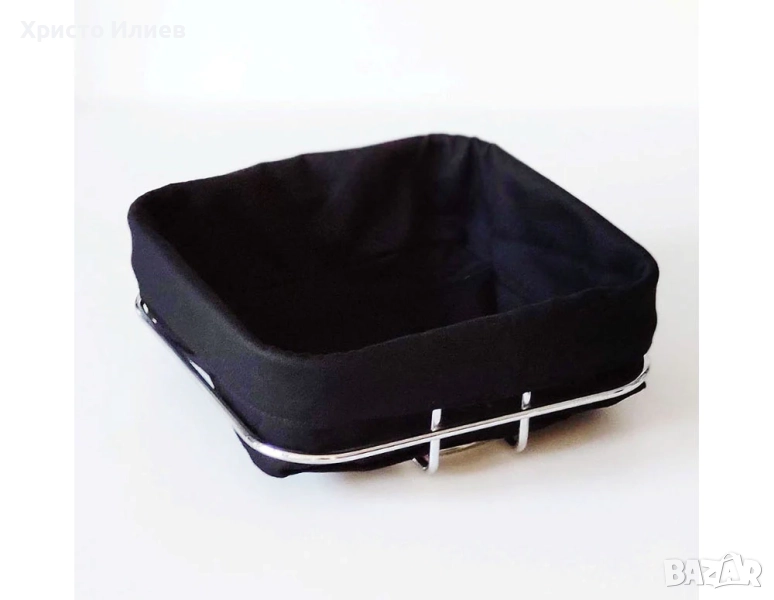 Стилен панер за хляб изработен от метал с хромирано покритие и текстилна кошница. Текстилната кошница може да се сваля, за да се почисти.