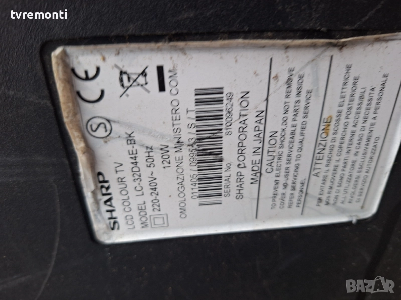 MAIN BOARD, QPWBXE449WJN3 KE449WE02 за 32-инчов телевизор SHARP Модел LC-32D44E-BK , с дисплей LC32D44EGY Платката е използвана, но гарантирано работеща, демонтирана от телевизор със счупен дисплей. Тествана е от нашия техник.