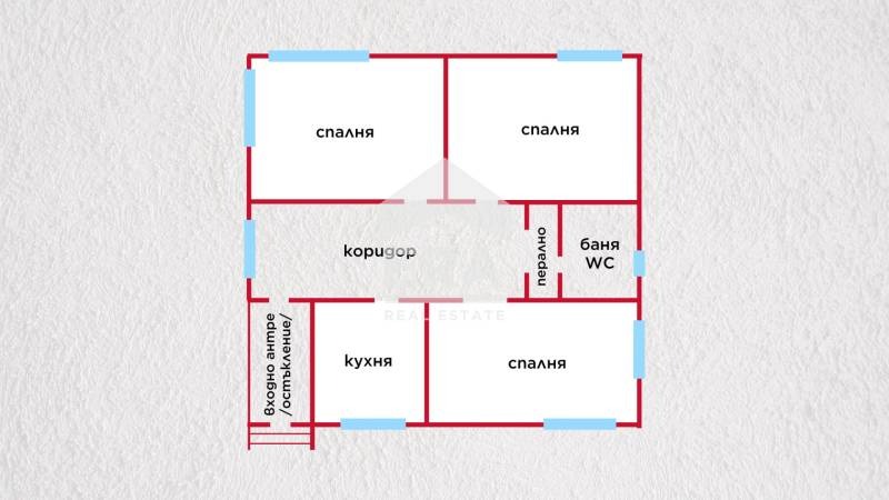 Първият жилищен етаж е с площ 103 кв.м. и се състои от предверие, коридор, кухня, три спални и санитарен възел баня с тоалетна и перално помещение. На първия етаж е с изцяло подменена PVC дограма, стените са шпакловани и боядисани с латекс, подовите настилки в стаите са с ламиниран паркет, а в коридора, кухнята и санитарното помещение са с фаянс и теракот. Има поставени нови климатици в стаите.