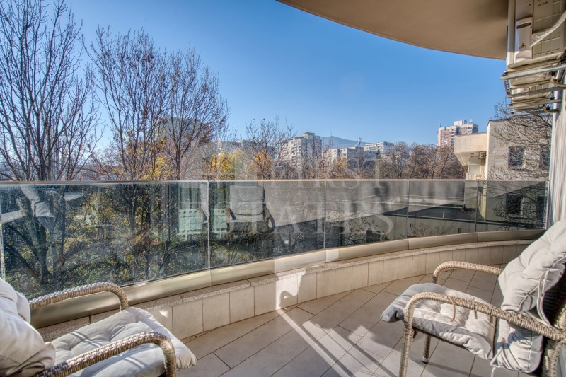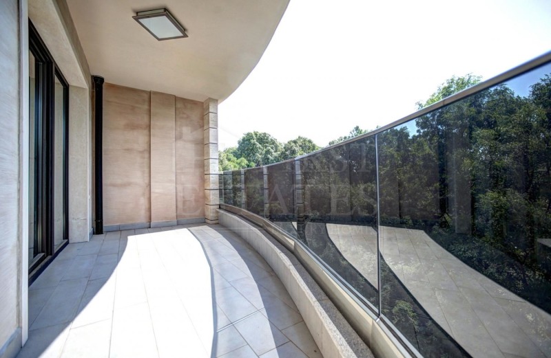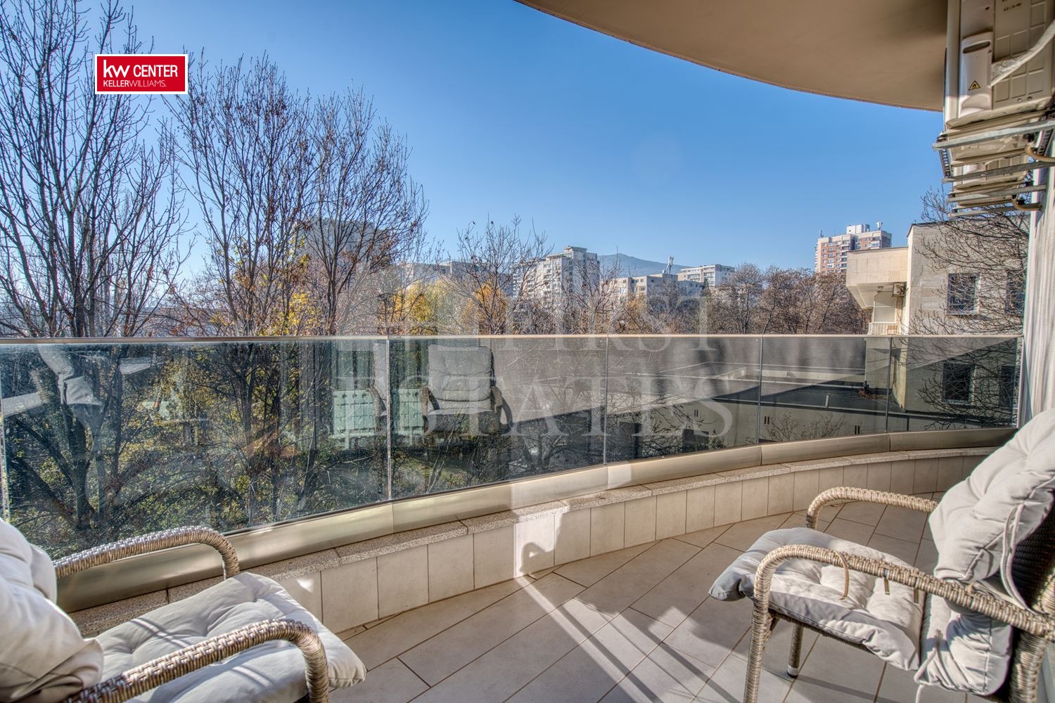 Апартаментът се намира в луксозна сграда до посолства, на много тихо и спокойно място сред зеленина.