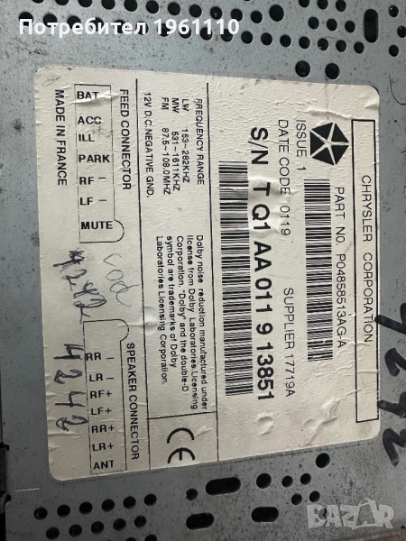 Радио/касетофон CHRYSLER/JEEP, снимка 1 - Аксесоари и консумативи - 52374604 Радио/касетофон CHRYSLER/JEEP, снимка 2 - Аксесоари и консумативи - 52374604 Радио/касетофон CHRYSLER/JEEP, снимка 3 - Аксесоари и консумативи - 52374604 Радио/касетофон CHRYSLER/JEEP, снимка 4 - Аксесоари и консумативи - 52374604 Радио/касетофон CHRYSLER/JEEP, снимка 5 - Аксесоари и консумативи - 52374604 Радио/касетофон CHRYSLER/JEEP, снимка 6 - Аксесоари и консумативи - 52374604 Радио/касетофон CHRYSLER/JEEP, снимка 7 - Аксесоари и консумативи - 52374604 Радио/касетофон CHRYSLER/JEEP, снимка 8 - Аксесоари и консумативи - 52374604 Радио/касетофон CHRYSLER/JEEP, снимка 9 - Аксесоари и консумативи - 52374604 1/9