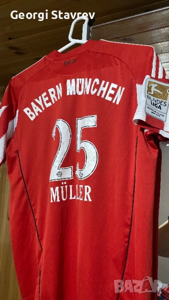 Продавам оригинална тениска на Байерн Мюнхен сезон 2010/11 година на Мюлер ,тениската е в много добро състояние със изключение отпред на рекламата видно от снимките ,изпращам по Еконт със преглед!!!