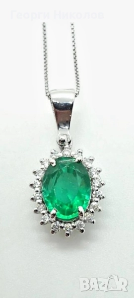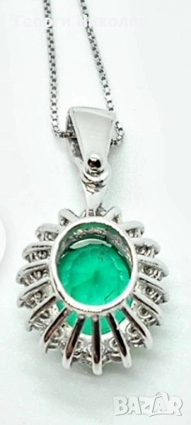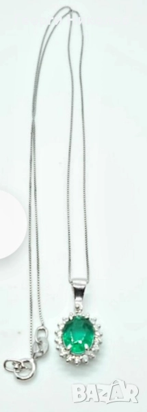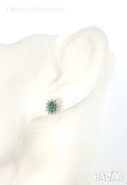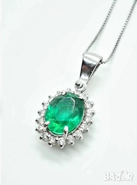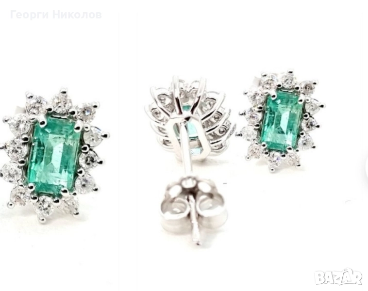 Обеци и колие 18к бяло злато изумруд и диаманти → Обява 52374688