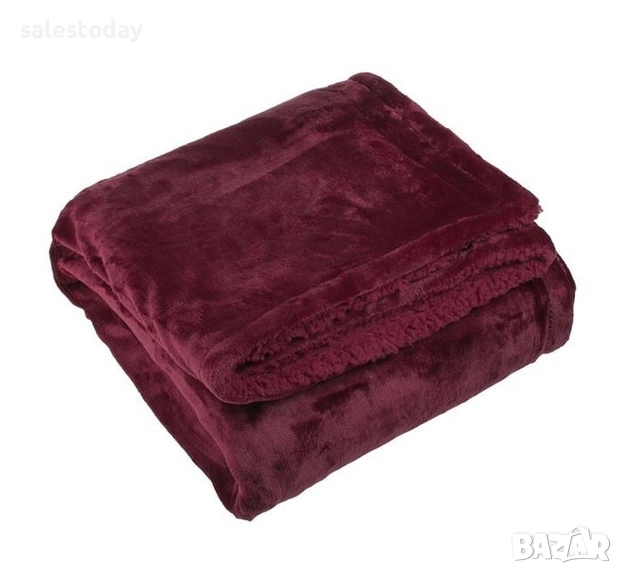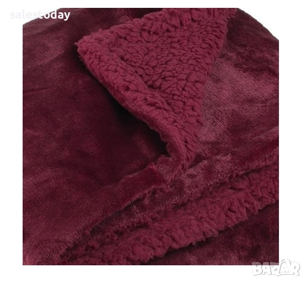 Зимно декоративно одеяло, бордо с 2 страни, велур и шерпа (овца) за