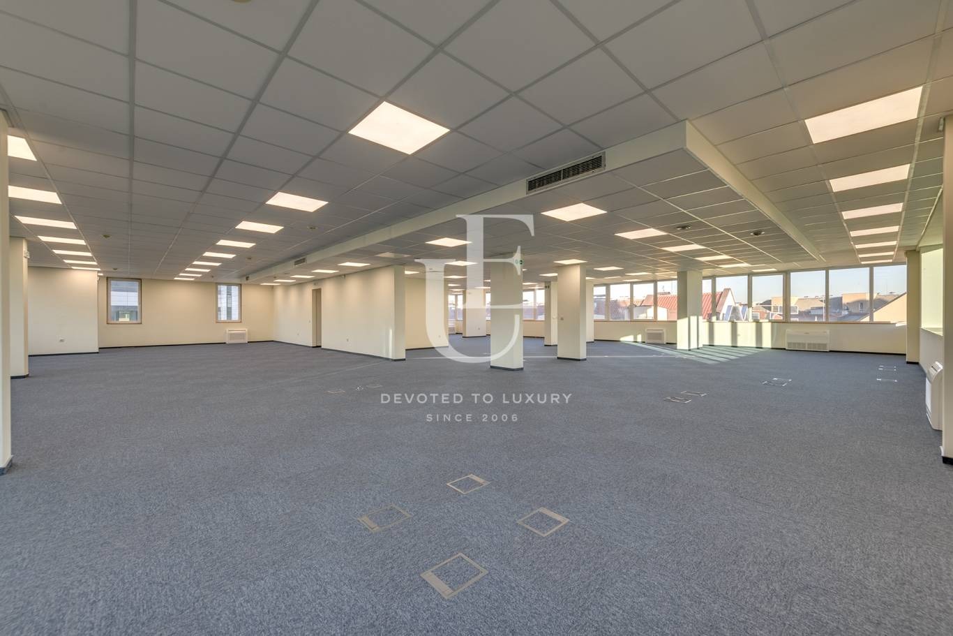 Разпределението е функционално и удобно, като включва отделен вход с предверие, сървърно помещение, санитарни възли, кухня, няколко самостоятелни зали и просторно open space пространство. Цената е без включен ДДС. Ref. ID:27958