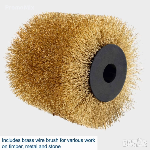 В комплекта е включена основна месингова четка, подходяща за почистване и обработка на метал, камък, както и на силно замърсени повърхности, като ръжда, стара боя и други наслоявания.