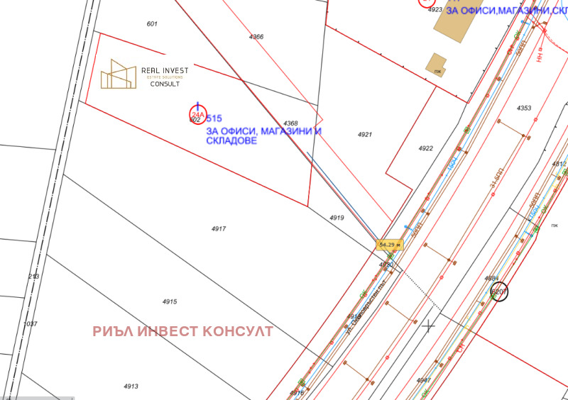 Имотът е с 45м. лице на улица разположена на 50 метра от ул. Софийски околовръстен път. Съгласно ОУП на гр. София парцелът попада в зона Смф2 - Смесена многофункционална зона предимно за околоградския район,с изисквания за ограничаване натоварването на средата. 50 % от озеленената площ е с висока дървесна растителност. Показателите от долния ред са за зони, тангиращи републиканската
