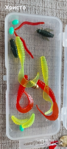 Различни модели воблери блесни клатушки силикони за всички видове хищна риба. цена с кутията 6евро общо. За поръчка ни пишете име тел и адрес на куриера еконт.