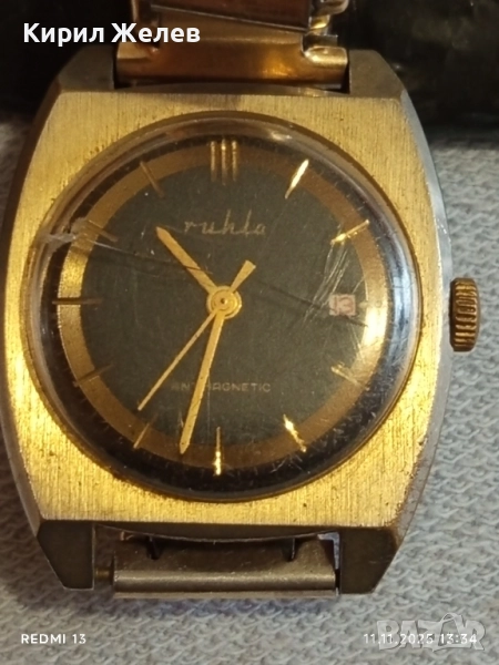 Стар механичен часовник дамски RUHLA ANTI-MAGNETIC GERMANY работи позлатен 51512
