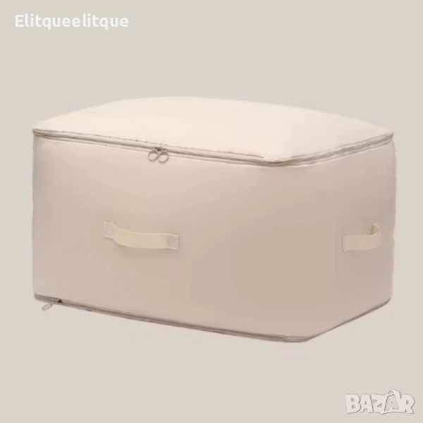 Compressed Cotton Quilt Bag е идеалното решение за съхранение на одеяла, завивки и други обемисти текстили. С компресираща функция, която намалява обема с до 40%, тя спестява място и позволява лесна организация в гардероба, шкафа или под леглото. Торбата е изработена от дишащи материали, които предотвратяват натрупването на влага и мухъл, като същевременно запазват съдържанието свежо и сухо. Здравият цип и устойчивият материал осигуряват сигурност и издръжливост, а неутралният дизайн я прави подходяща за всяко помещение. Размери: 60 x 40 x 30 см. Спестете място и съхранявайте текстилните си артикули организирано с този практичен продукт.