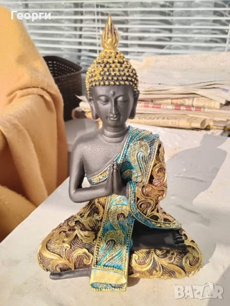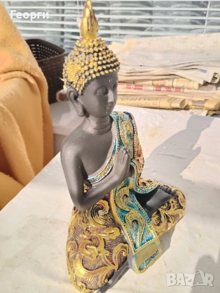 Много красива нова статуетка на Буда.Размери 20 на 14 на 10 сантиметра.Матерял резин.