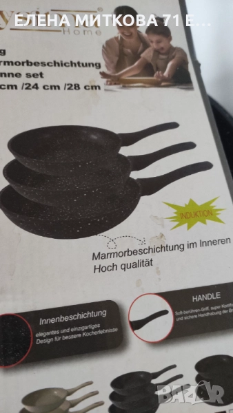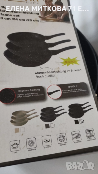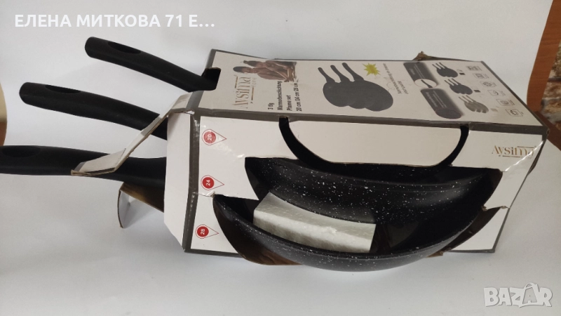 Нов комплект от 3 тигана с мраморно покритие+индукция