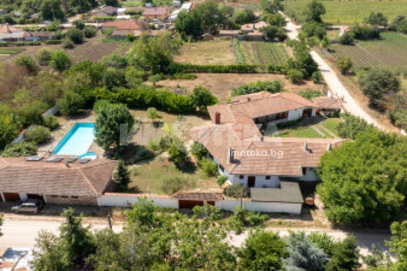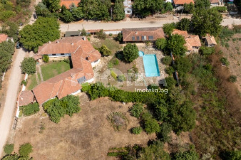 Имотът се състои от голяма, основна сграда, по -малка , допълнителна постройка, разположени върху голям, ъглов парцел с площ от 3642 кв.м