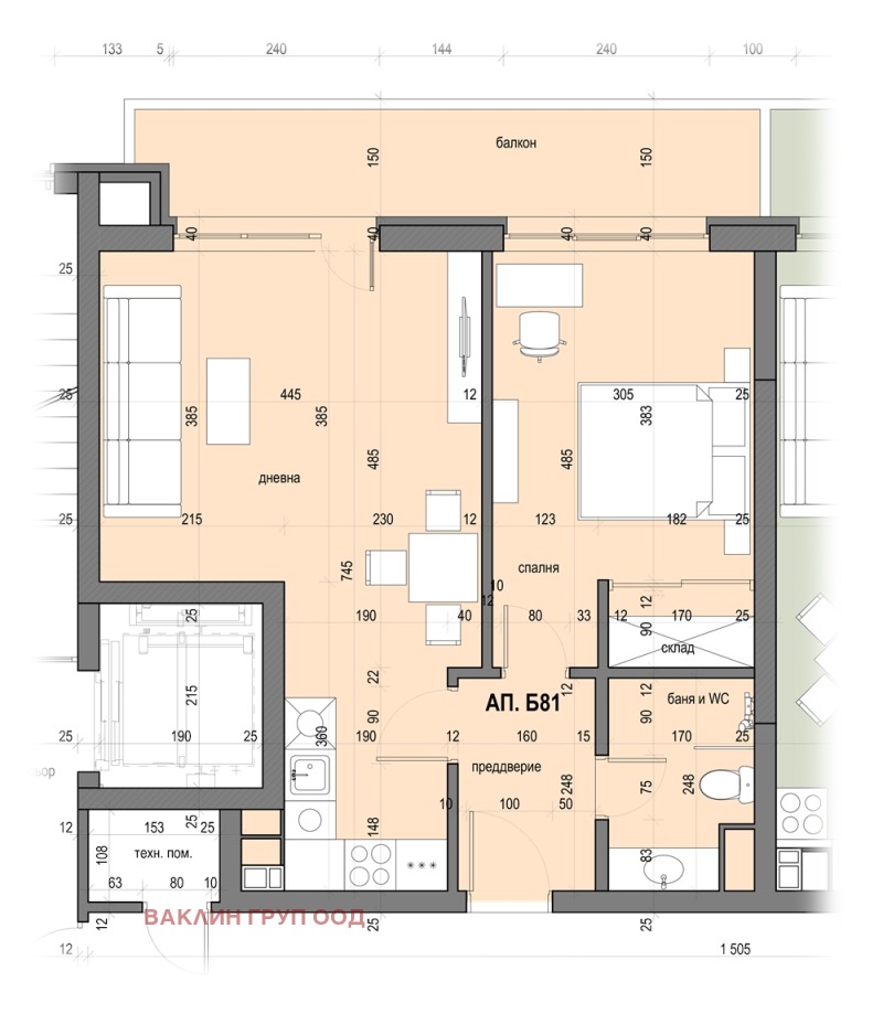 ✔ 79.11 кв.м с оптимално разпределение-светла всекидневна, комфортна спалня, тераса и модерна баня