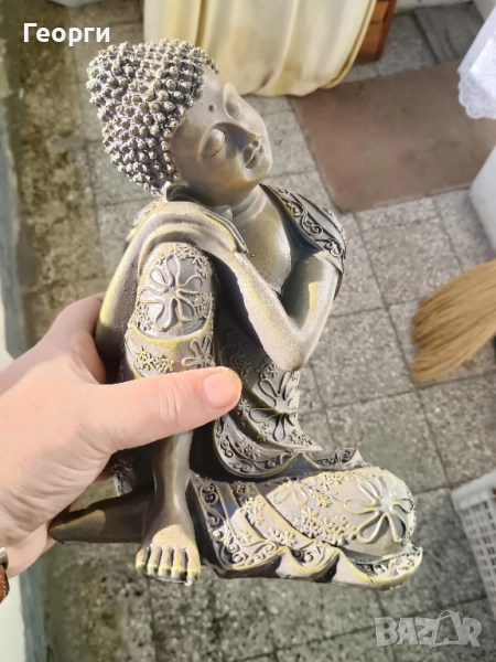 Много красива нова статуетка на Буда.Размери 24 на 16 на 13 сантиметра.Матетял резин.