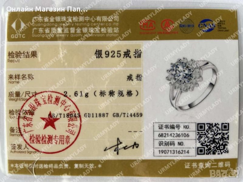 Материал: Стерлингово сребро 925