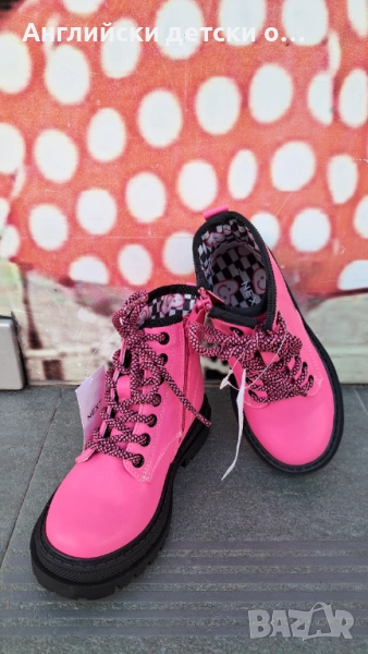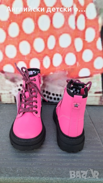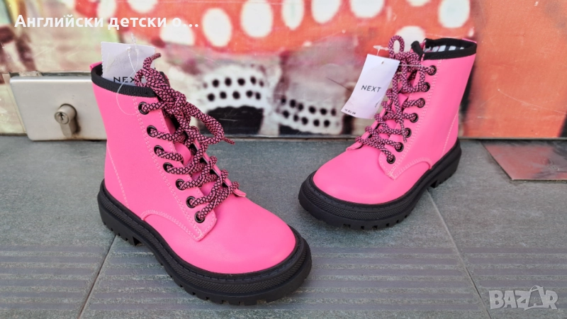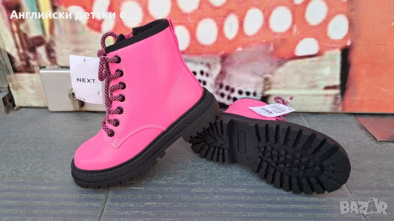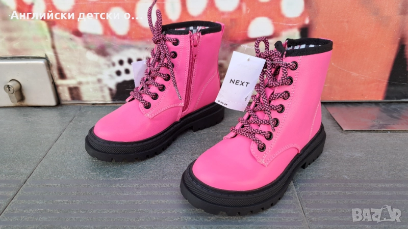 Детски боти -Next,модерен цвят неоново розово ,непромокаеми от еко кожа,с цип и връзки,с грайферна подметка,внос от Англия.