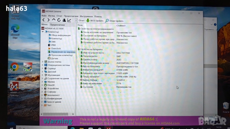 Лаптопа работи, с една забележка. Дисплея има някакъв проблем.При старт на лаптопа или след заспиване в началото дава бял екран, докато загрее(10-15 мин.), От там нататък работи нормално.