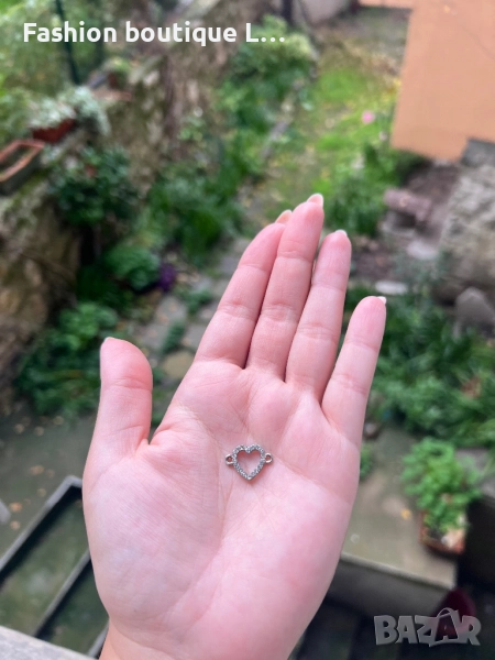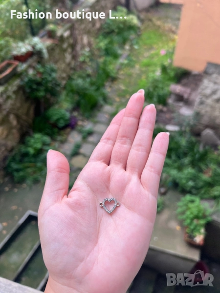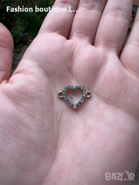 Сребристо медальонче във формата на сърце с блестящи камъчета ❤️ → Обява 52378348