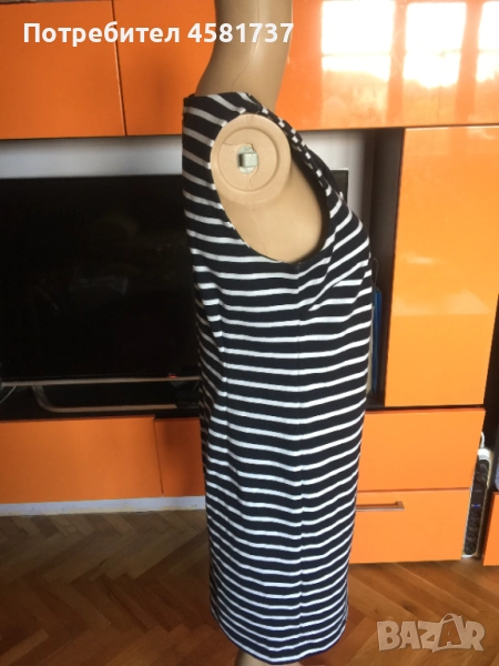 За мен тази рокля е нещо като basic дреха за летния сезон. За дамите, които се придържат към класиката и същевременно оригиналната кройка и детайли. Роклята е в перфектно състояние. Размери дължина 90 см., разстояние мишници 39 см.