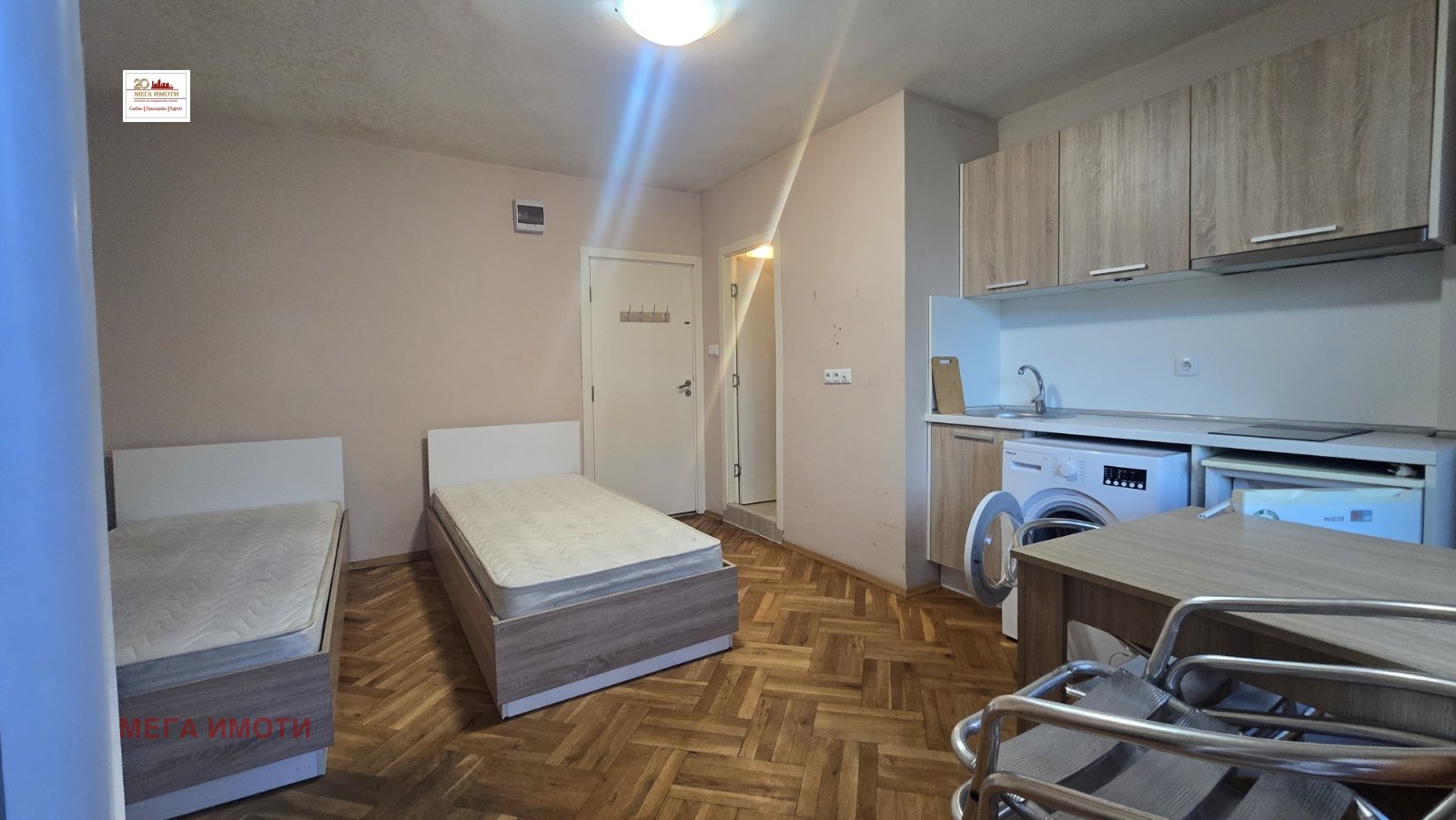 ИНВЕСТИЦИОНЕН ИМОТ!!! ЧЕТИРИ студиа на цената на ДВЕ!!! В района на Билкова аптека и Музикалното училище в сграда от 2000 г. с асансьор и Акт 16 просторен тристаен апартамент на четвърти жилищен етаж с изложение север/юг, преустроен на ТРИ студиа, всяко със санитарен възел и тераса. Към имота има и прилежащ мансарден таван, преустроен в стая с WC. Имота се продава с наличното обзавеждане и оборудване. Реф. номер 19402