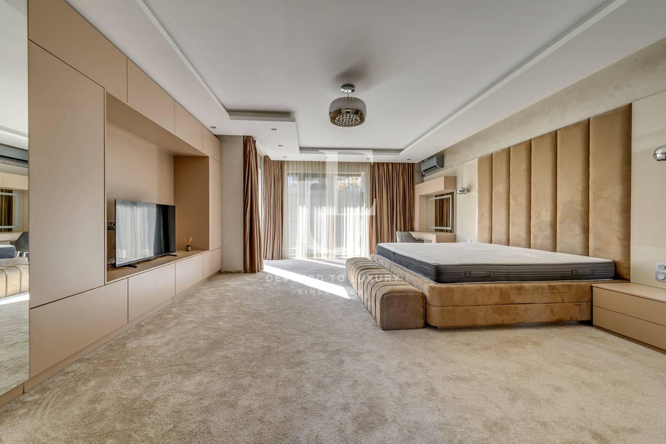 Мастър спалня с голяма гардеробна, собствена баня и тераса с гледка към Витоша, две спални, просторна баня и мокро помещение