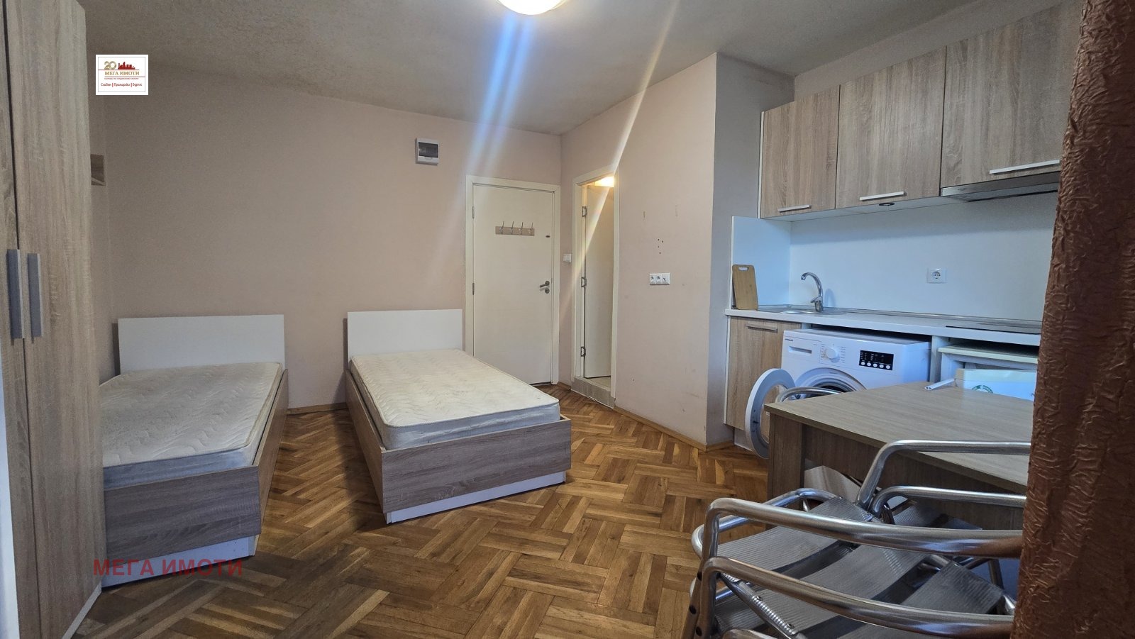 ИНВЕСТИЦИОНЕН ИМОТ!!! ЧЕТИРИ студиа на цената на ДВЕ!!! В района на Билкова аптека и Музикалното училище в сграда от 2000 г. с асансьор и Акт 16 просторен тристаен апартамент на четвърти жилищен етаж с изложение север/юг, преустроен на ТРИ студиа, всяко със санитарен възел и тераса. Към имота има и прилежащ мансарден таван, преустроен в стая с WC. Имота се продава с наличното обзавеждане и оборудване. Реф. номер 19403