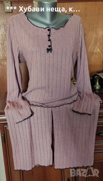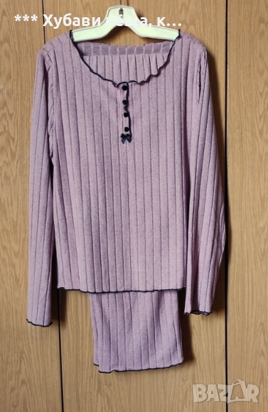Продавам чисто нова дамска пижама. Тя е разкошна, стилна и луксозна, лека и красива. Подходяща за тези, които обичат комфорта и елегантността. Материята е памучно трико. Закупих я онлайн, но за съжаление се оказа, че не ми е по мярка иначе не бих я предложила тук. - модел - луксозен, елегантен