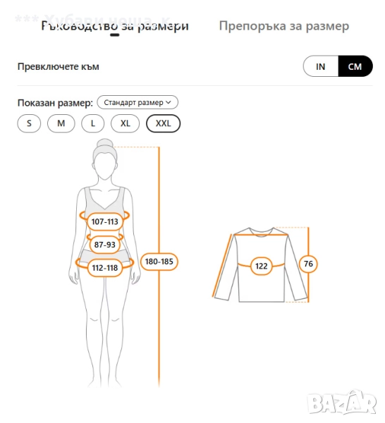 Блуза - Дължна 60 см., гръдна обиколка 58 см., Ръкав 65 см.